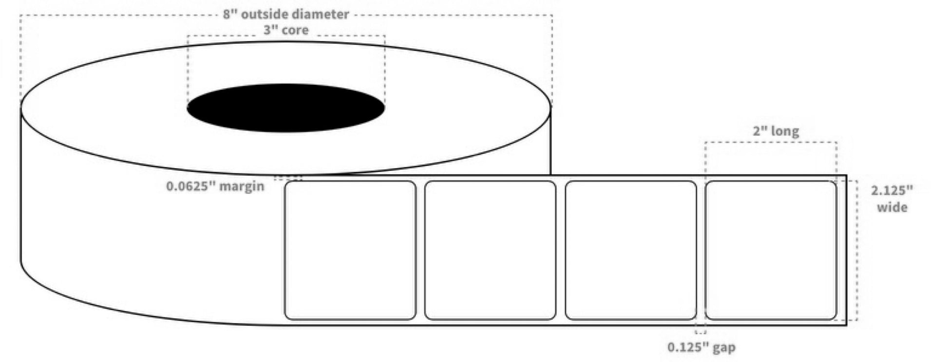 2.125" x 2" Blank Matte Labels with Matrix and Timing Mark