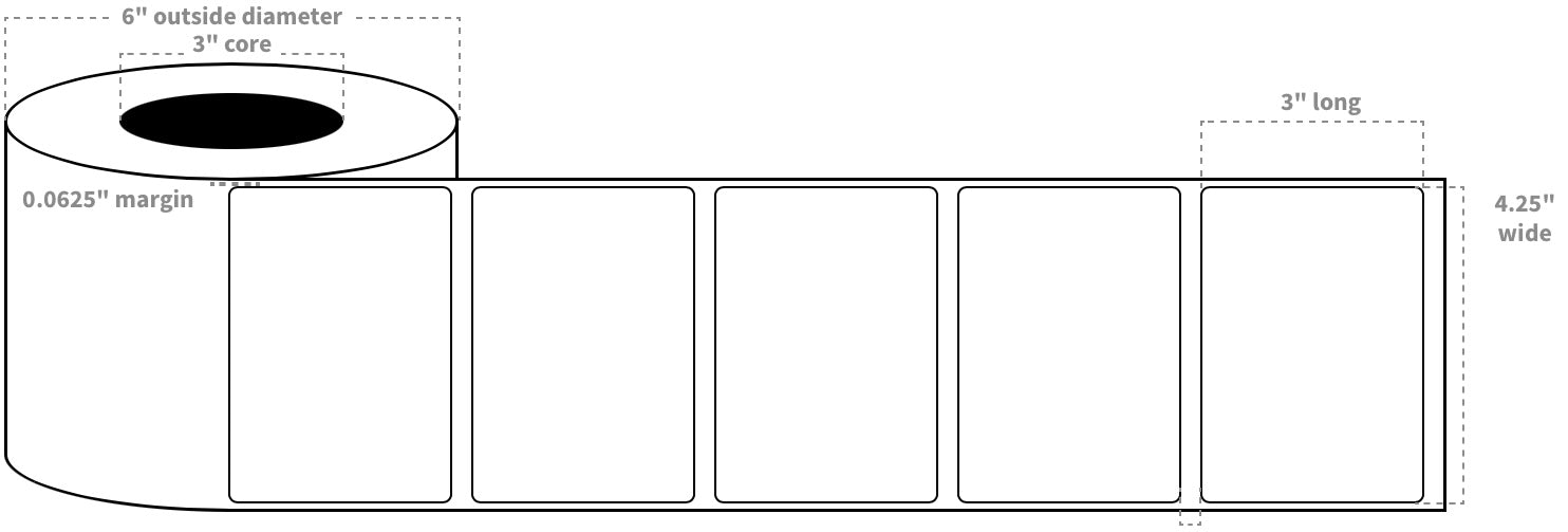 VIP 4.25"x3" Labels White High Gloss BOPP Blanks (1800 per Roll) #22656